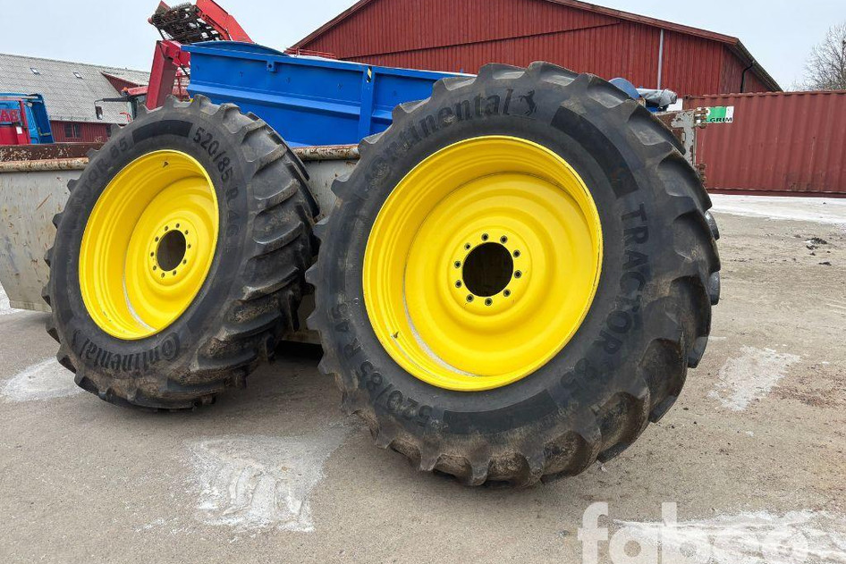 Fabeo, 520/85R46, traktorhjul, Continental däck, bakhjul traktor, traktordäck, begagnade traktordäck, fälgar gul, R46, storlek 46, lantbruksdäck, dubbelhjul, John Deere, New Holland