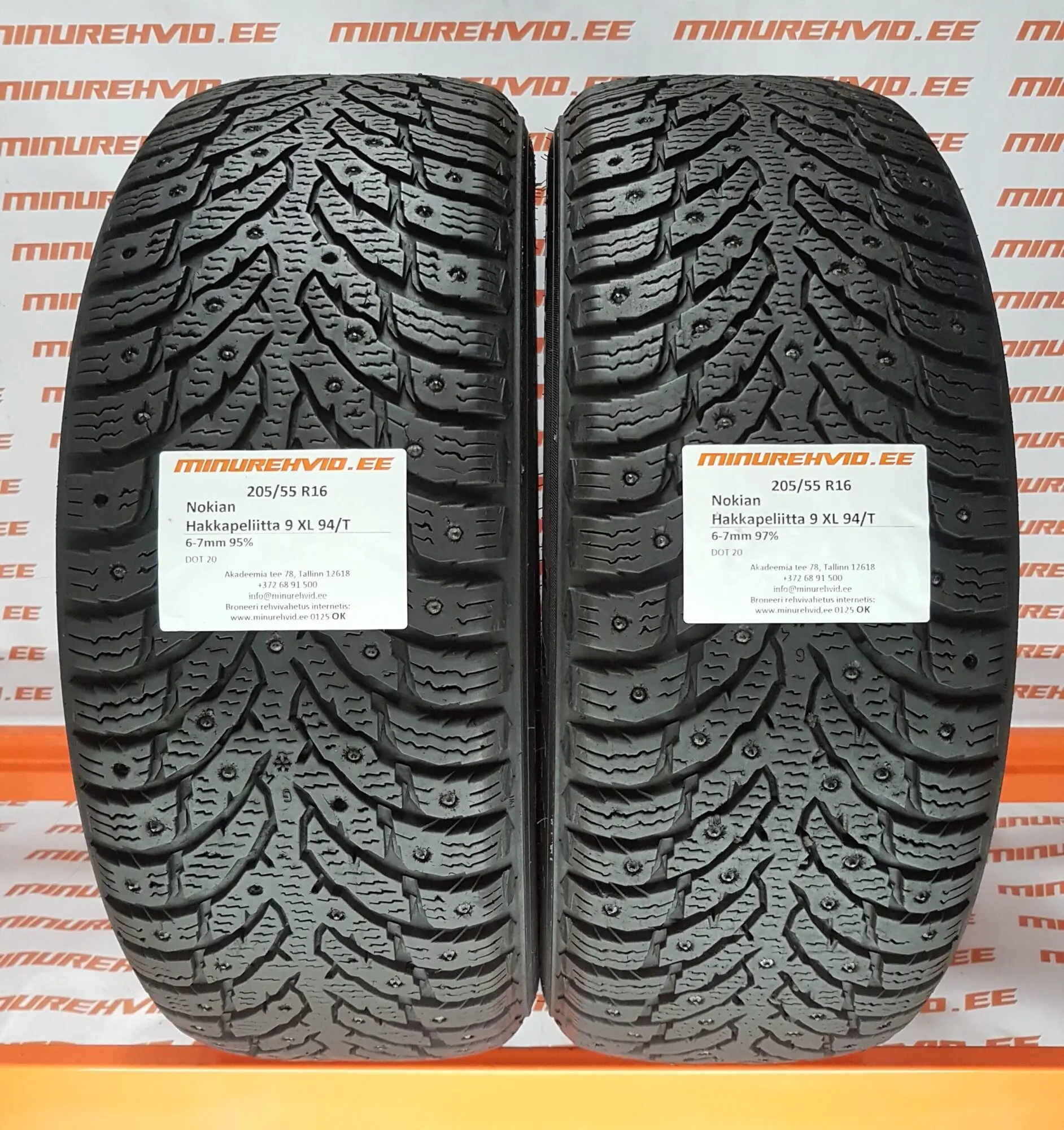 Подержанный шипованная шина 205/55R16 Nokian Hakkapeliitta 9 XL 94/T