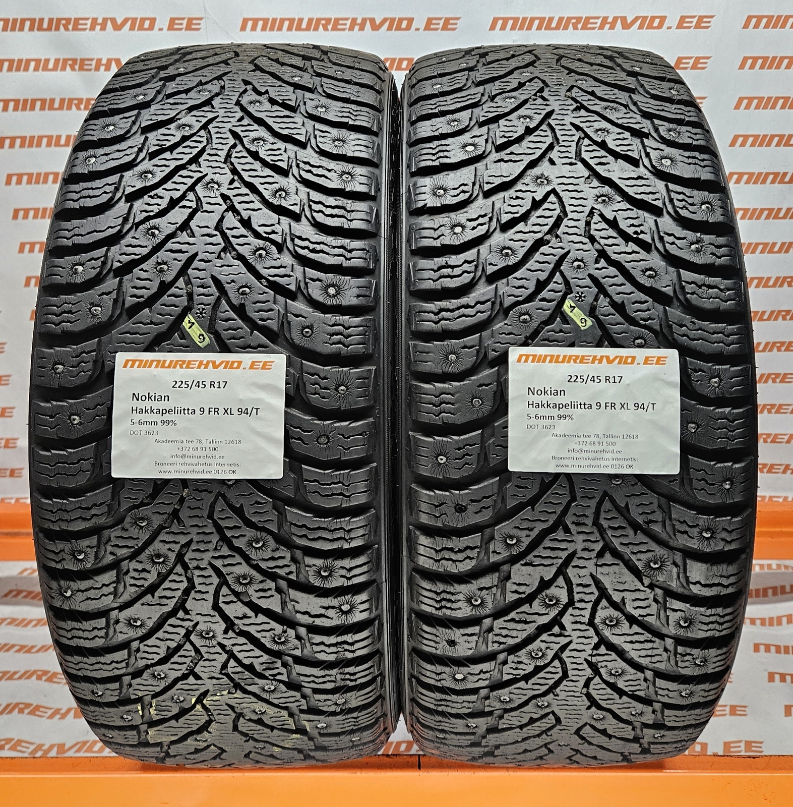 Подержанный шипованная шина 225/45R17 Nokian Hakkapeliitta 9 FR XL 94/T