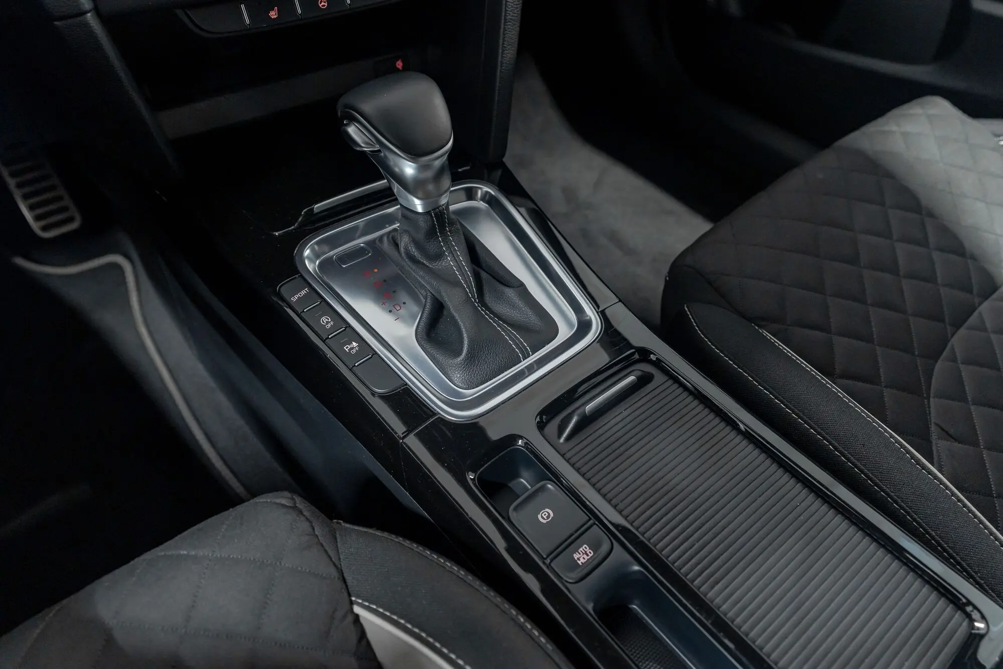 - Рукоятка рычага коробки передач: обтянутый кожей