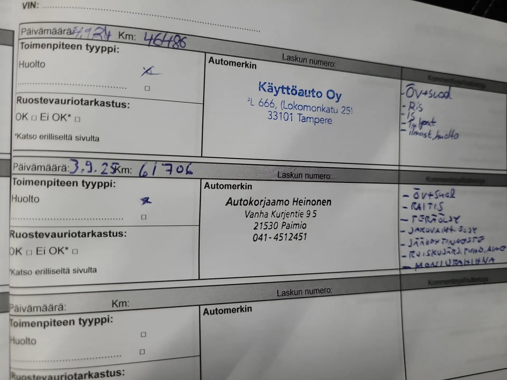 - Täielik hooldusraamat