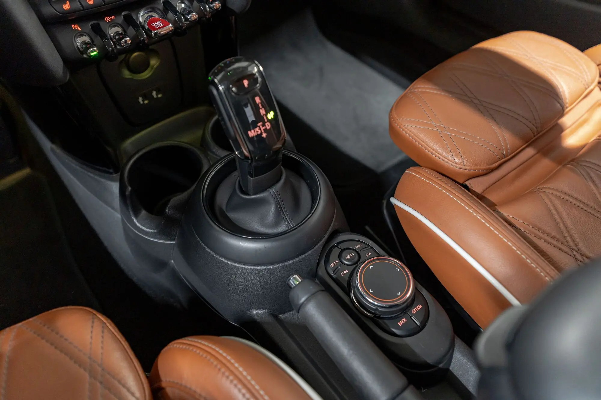 - Рукоятка рычага коробки передач: обтянутый кожей